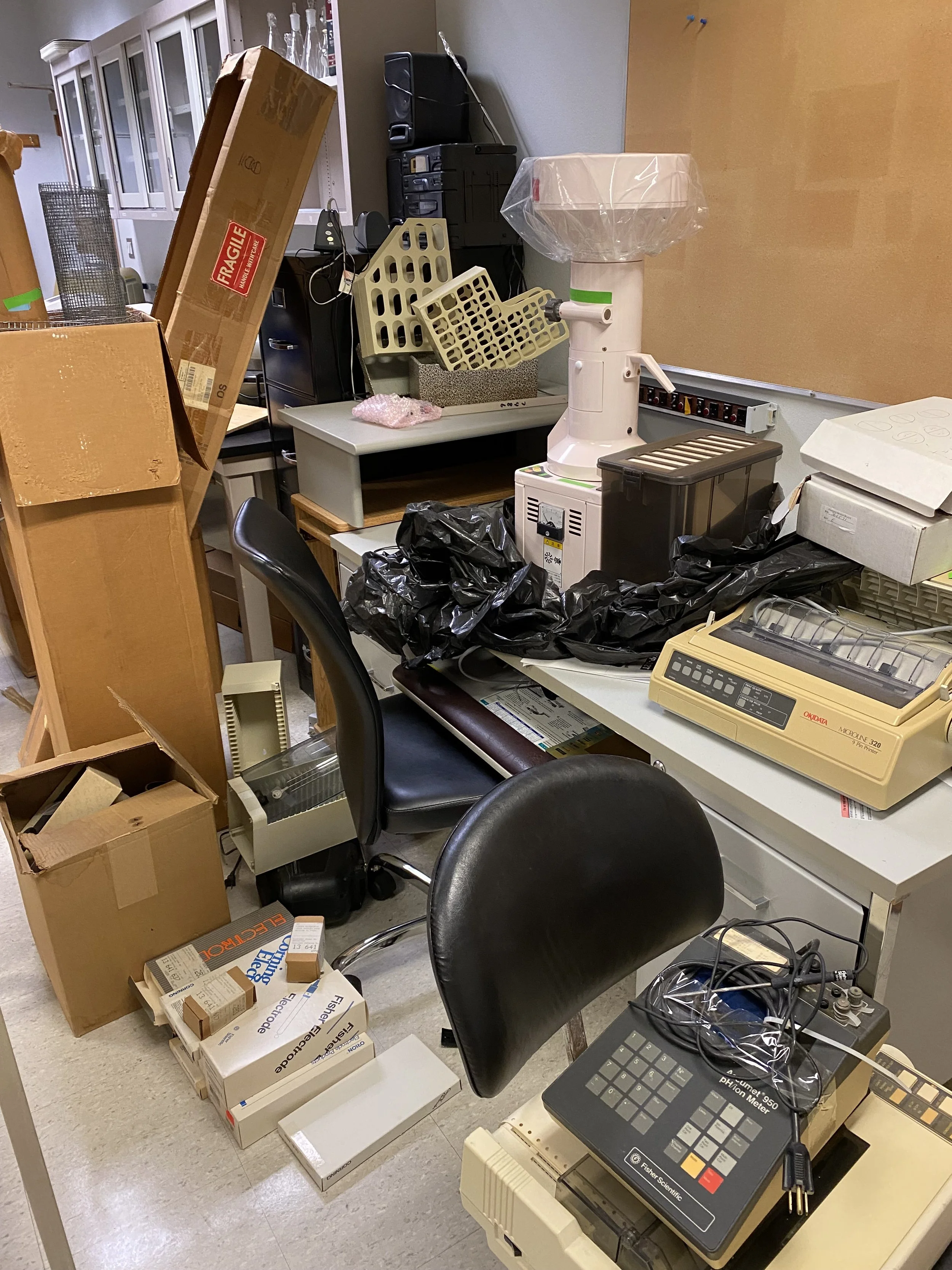 Mike learns how much stuff his lab space can hold as he cleans out every cabinet and drawer (mostly trash but some treasures) (September, 2021)