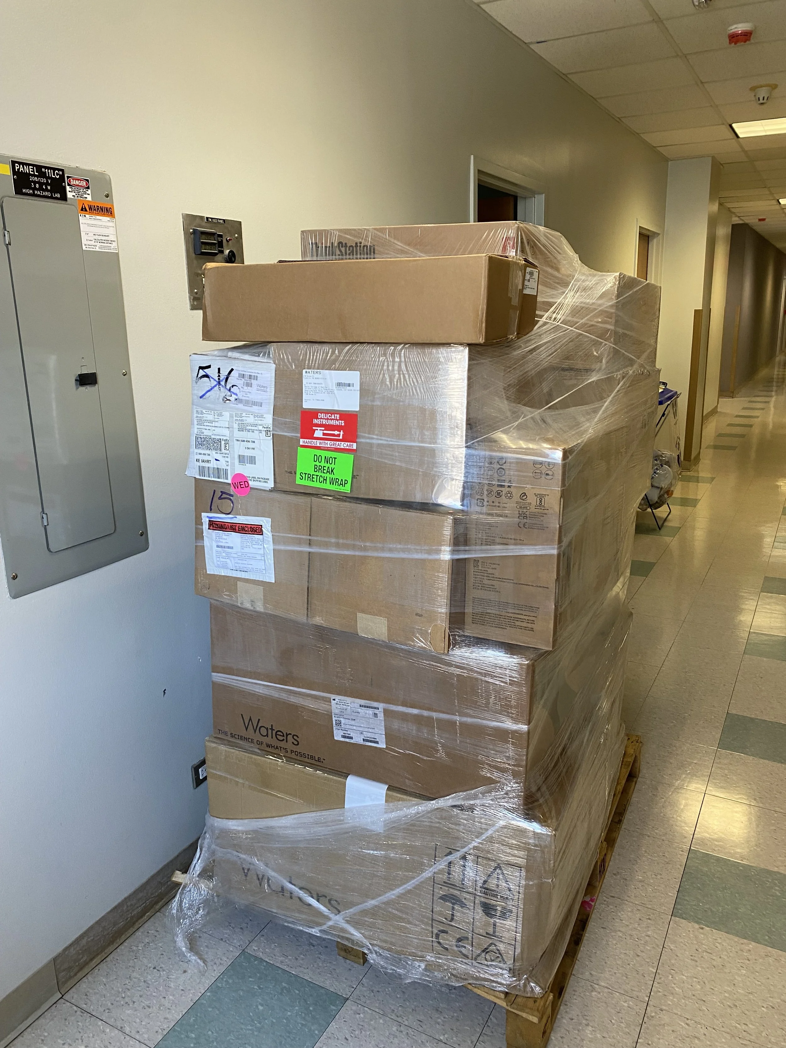 It's here! Our Waters UPLC-PDA-QDa resting in the hallway after its world tour (April, 2022)